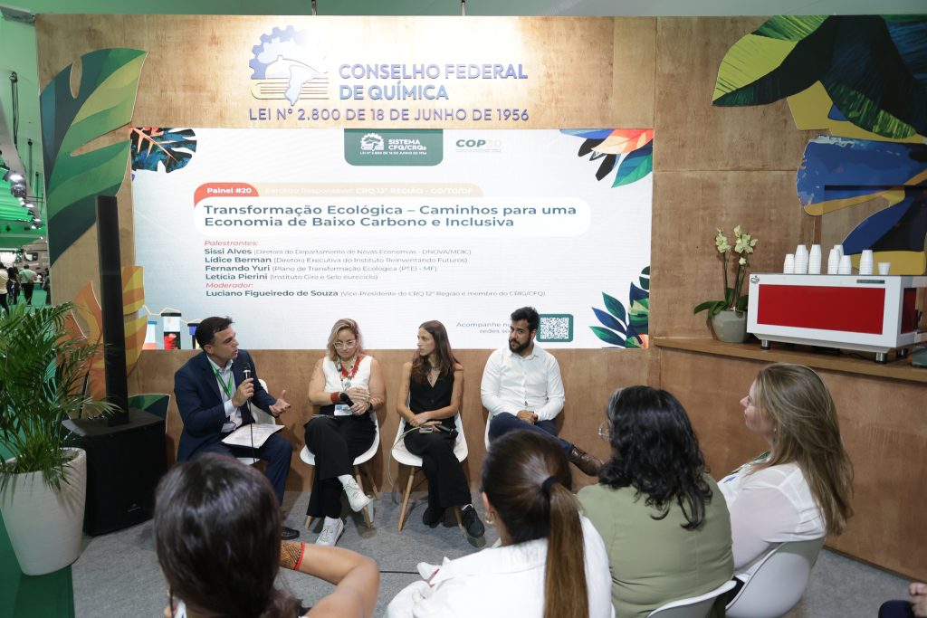 O CRQ-12 esteve representado pelo vice-presidente Luciano Figueiredo, que atuou como moderador dos painéis sobre “Transformação Ecológica”, “Estratégia Goiás Carbono Neutro 2025” e “A Química no Centro da Transição Energética”, realizados na Green Zone. E, também contou com a participação do conselheiro e coordenador da Câmara Técnica de Meio Ambiente do CRQ-12, Fernando Yuri, que ampliou o diálogo institucional e fortaleceu a presença da química nas discussões sobre sustentabilidade, inovação e transição climática.
